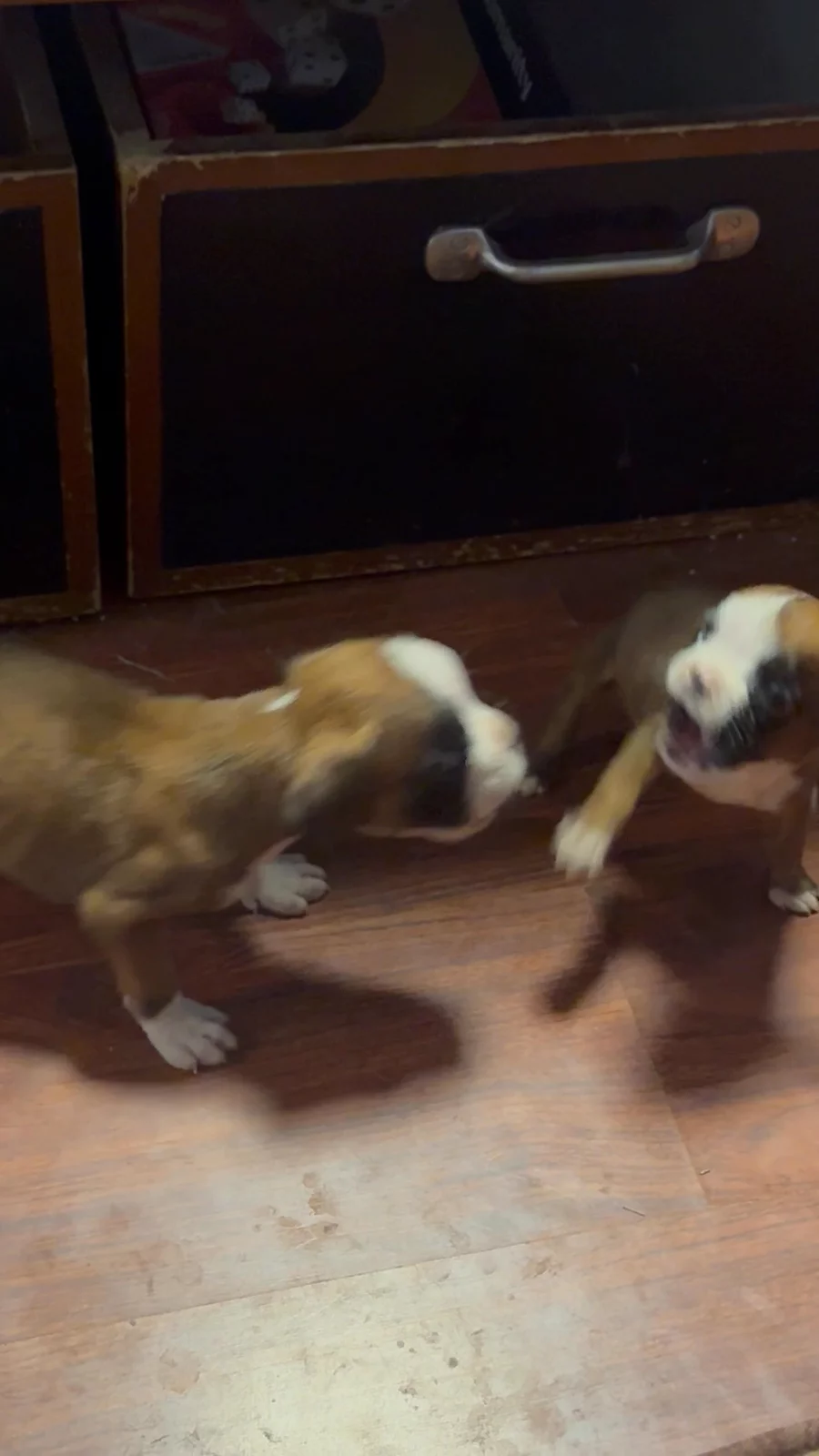 The puppies are wondering why playtime stopped after running around the house all morning. 🥰