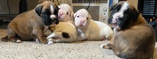 Our puppies include fawn, brindle, and white. Colors will vary depending on the parent dogs.