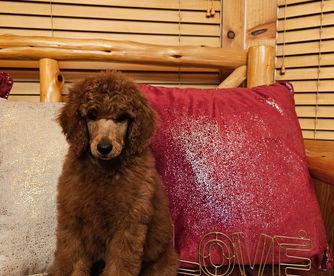 I'm Sharon M., the breeder behind Rosevly Standard Poodles located in Texas. We raise our puppies with total care and attention so they can become well-socialized and loving additions to their forever homes. It’s important to us that we continue to improve our program and share our knowledge with our buyer families. We want to better the breed through thorough health testing and selective breeding decisions.