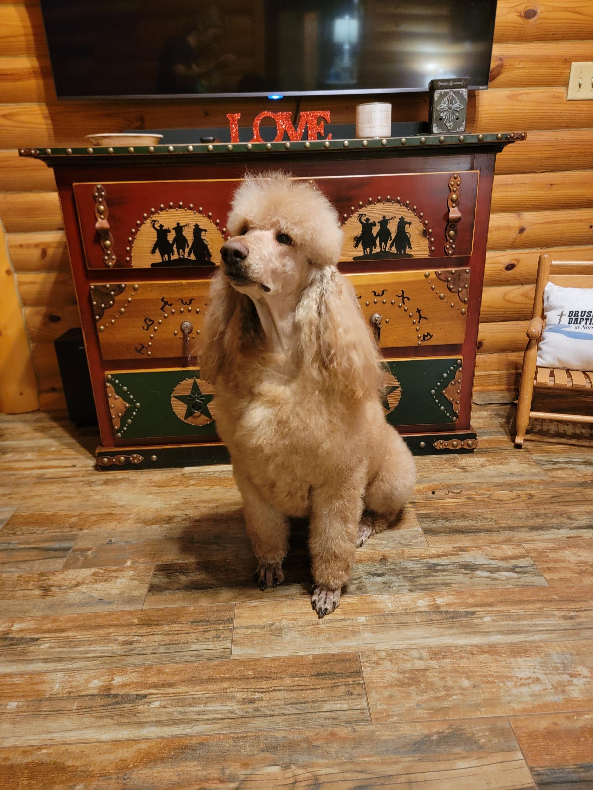 Schroeder is a male Poodle. Carefully selected as a great representative of his breed, Sharon decided to make him part of their program. Sharon has passed Good Dog’s screening process, which involved a review of their breeding practices, environment, and the mental and physical health of their dogs.