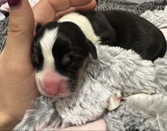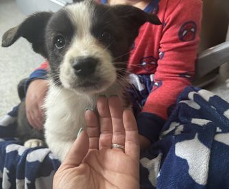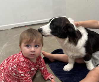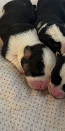 Our Cardigan Welsh Corgi puppies include brindle and white, black and white, and red and white. Colors will vary depending on the parent dogs.
