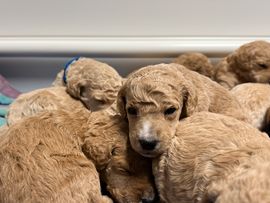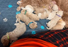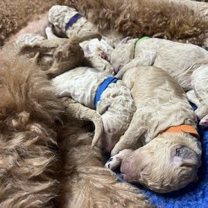 Our puppies include apricot, black, blue, cream, and red. Colors will vary depending on the parent dogs.
