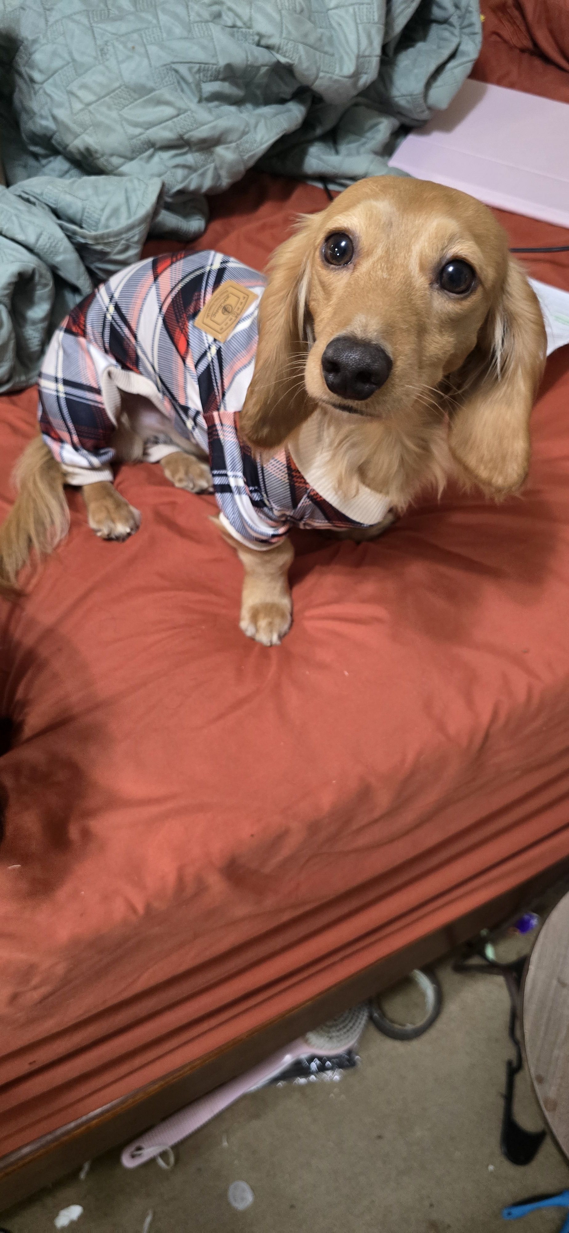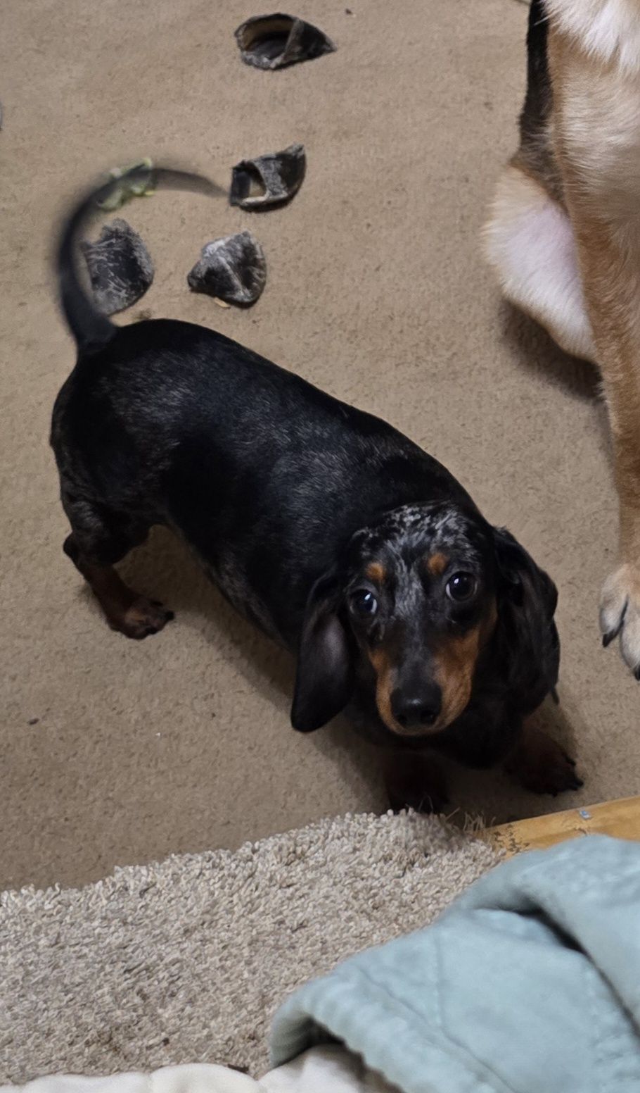 Daisy Mae is a female Dachshund. Carefully selected as a great representative of her breed, Rose decided to make her part of their program. Rose has passed Good Dog’s screening process, which involved a review of their breeding practices, environment, and the mental and physical health of their dogs.
