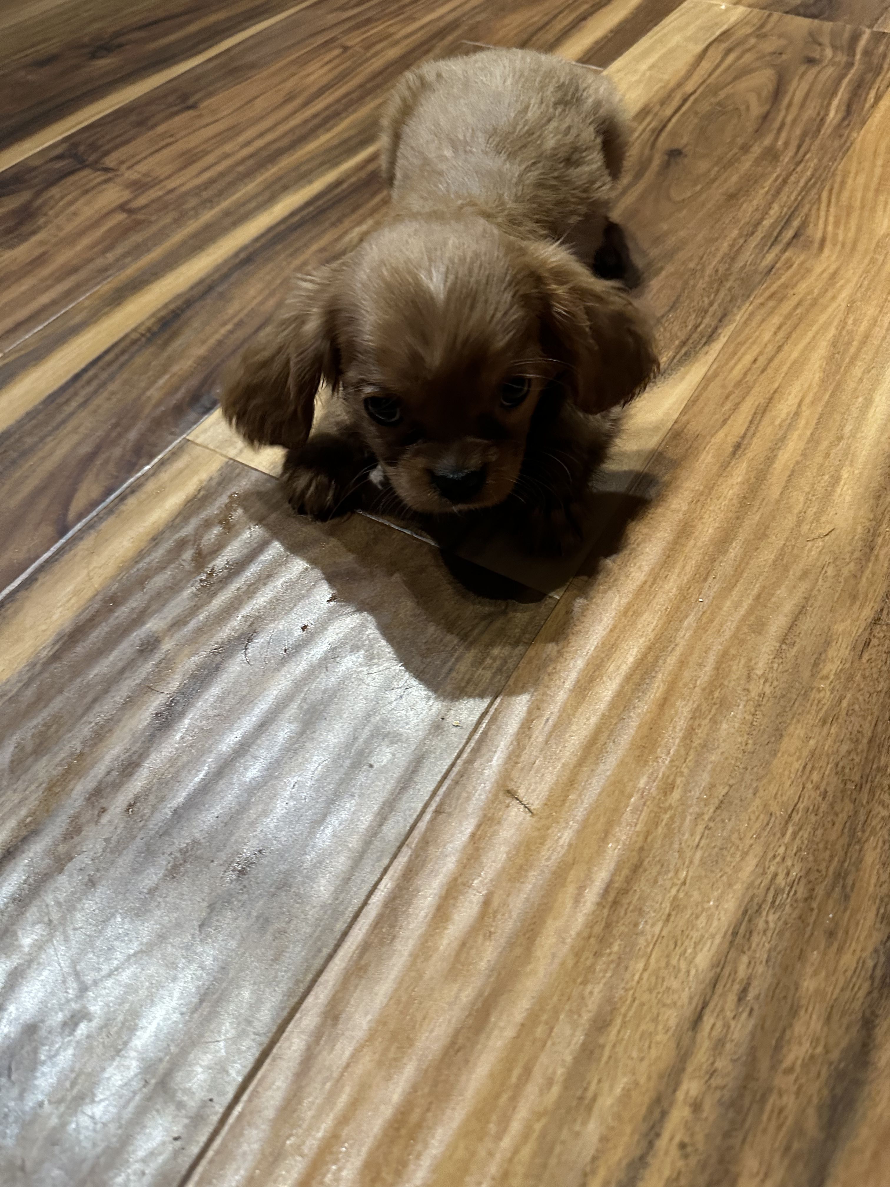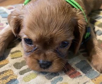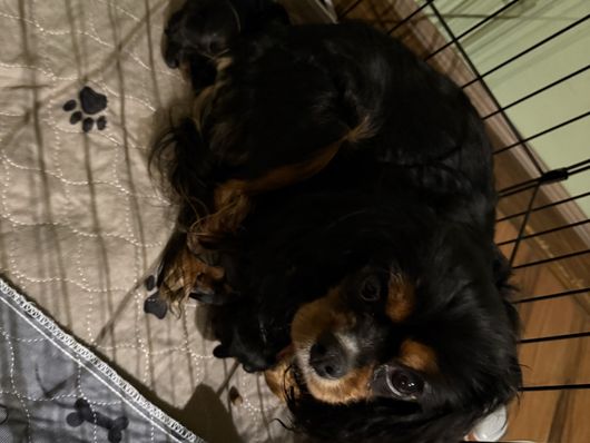 Dixie is a loving girl who likes to play with her other two Cavalier King Charles in our household. She especially loves her brother Dyno who is a Pit Bull Mix. Loves to lay down on top of him and cuddle.