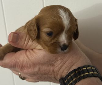 Rosie is a female Cavalier King Charles Spaniel. Carefully selected as a great representative of her breed, Mike decided to make her part of their program. Mike has passed Good Dog’s screening process, which involved a review of their breeding practices, environment, and the mental and physical health of their dogs.