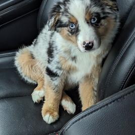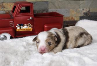 Our Australian Shepherd puppies include red merle, blue merle, black tri-color, and red tri-color. Miniature Australian Shepherd puppies include blue merle, black tri, red tri, and red merle. Toy Australian Shepherd puppies include black tri, blue merle, red merle, and red tri. Miniature American Shepherd puppies include red tri-color, black tri, red merle, and blue merle. Colors will vary depending on the parent dogs.