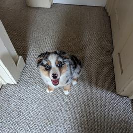 Stetson is a male Miniature American Shepherd. Carefully selected as a great representative of his breed, Kim decided to make him part of their program. Kim has passed Good Dog’s screening process, which involved a review of their breeding practices, environment, and the mental and physical health of their dogs.