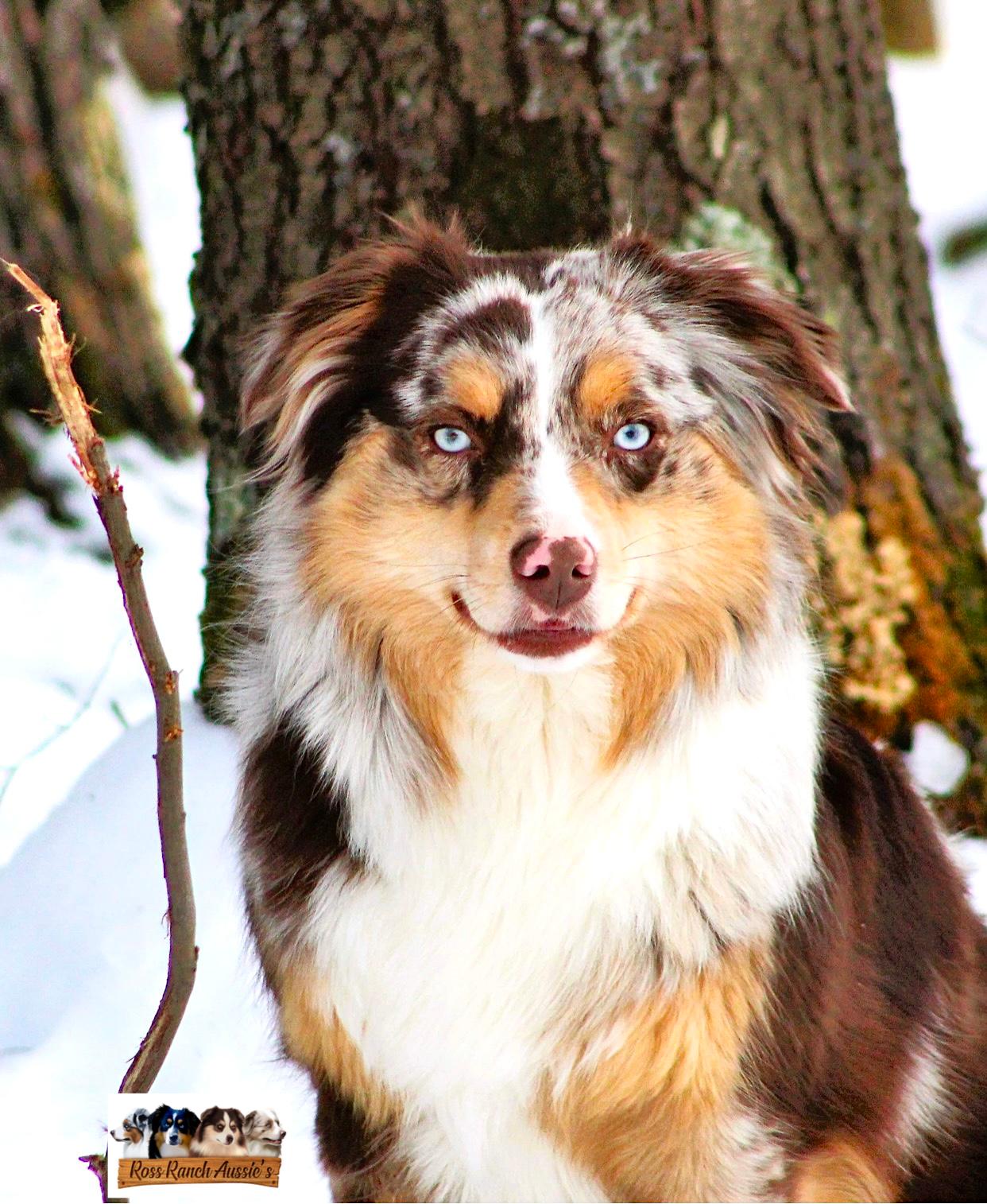 I'm Kim R., the breeder behind Ross Ranch Mini and Standard Aussie's located in South Branch, MI. Our dogs are bred for health, conformation and good temperaments! They dogs excel at agility, frisbee, conformation, rally, dock diving, and herding. We have a couple trained as therapy dogs and many of our puppies go to people as service dogs.