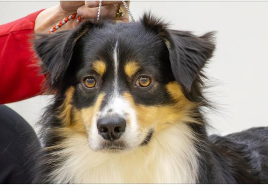 Image is a female Miniature Australian Shepherd. Carefully selected as a great representative of her breed, Kim decided to make her part of their program. Kim has passed Good Dog’s screening process, which involved a review of their breeding practices, environment, and the mental and physical health of their dogs.