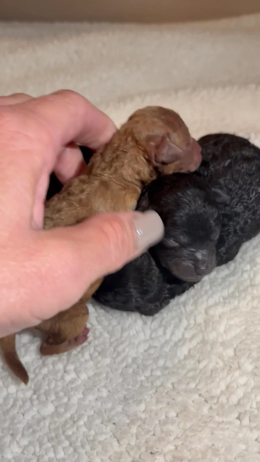 Our Poodle puppies include black, red, and phantom. Border Collie puppies include blue merle, red merle, blue, gold, and white and red. Colors will vary depending on the parent dogs.