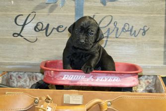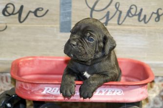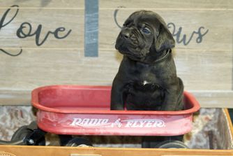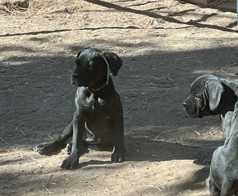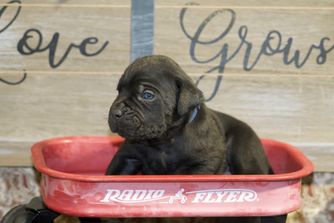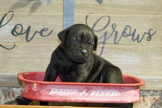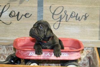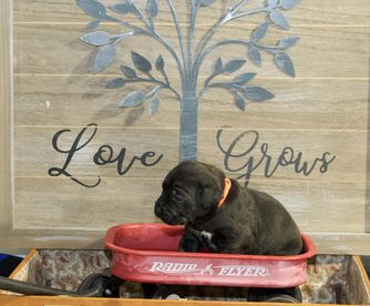 Our puppies include black and black brindle. Colors will vary depending on the parent dogs.