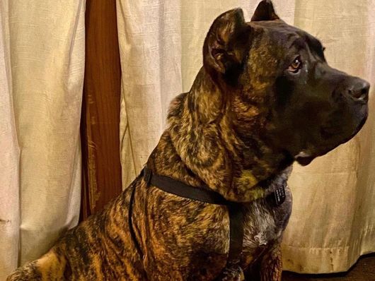 Hendryx is a magnificent chestnut brindle Cane corso! Weighing in between 165lbs-170lbs and 34" at the withers, Hendryx is the most gentle corso we have ever met! Very calm natured and wonderful temperament