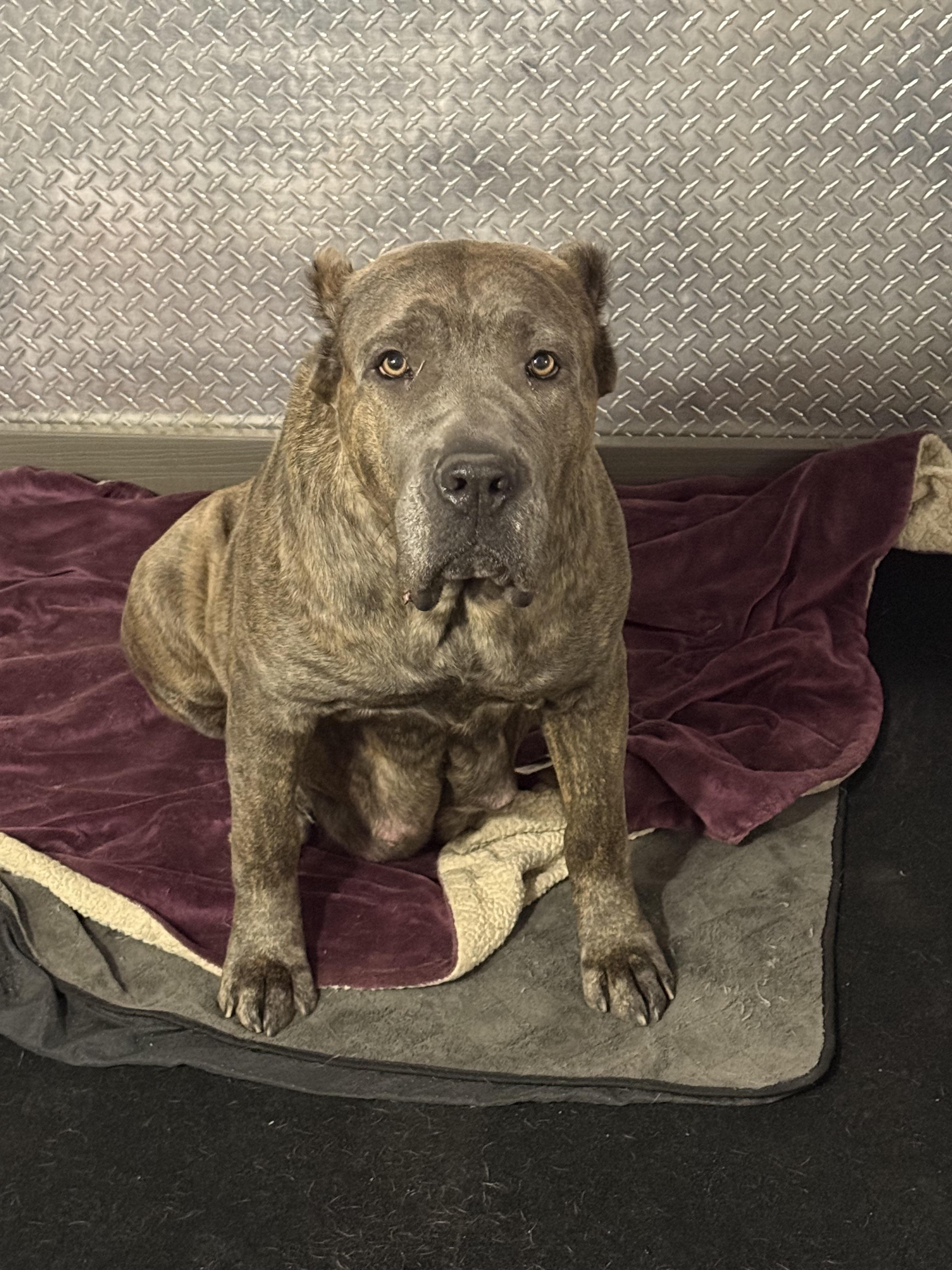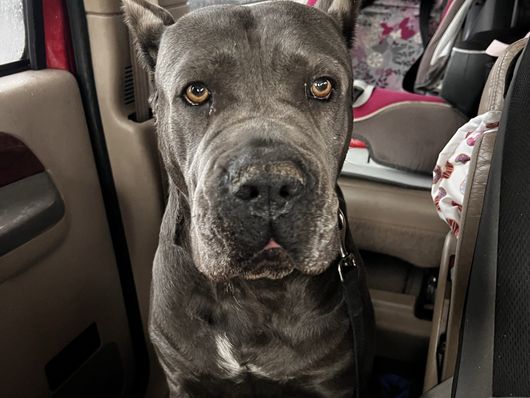 Stella is a stunning Blue Corso with gorgeous eyes! You can feel her staring into your sole from across the room! She is the matriarch of her pack and will dedicate her life to protect it! Stella is an absolute work horse and will not let her age stop her!
