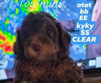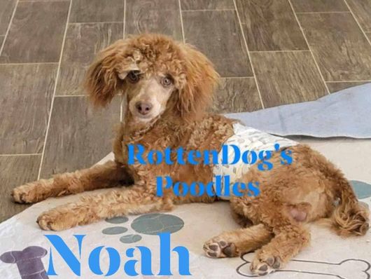 Noah is a sweet boy and he gets along with other including my other males. He is 11"7lbs and a gorgeous brown agouti that's clear for all poodle diseases.