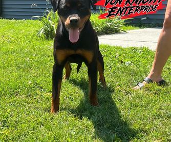 I'm Nathaniel K., the breeder behind Rottweiler von knight enterprise located in Jeffersonville, IN. Our dogs are our beloved companions. We care deeply about this breed and are proud to be responsible Rottweiler breeders. We decided to take our love for this breed to the next level by breeding our incredible dogs. We hope our puppies bring lots of joy and love into the hearts of their new families!
