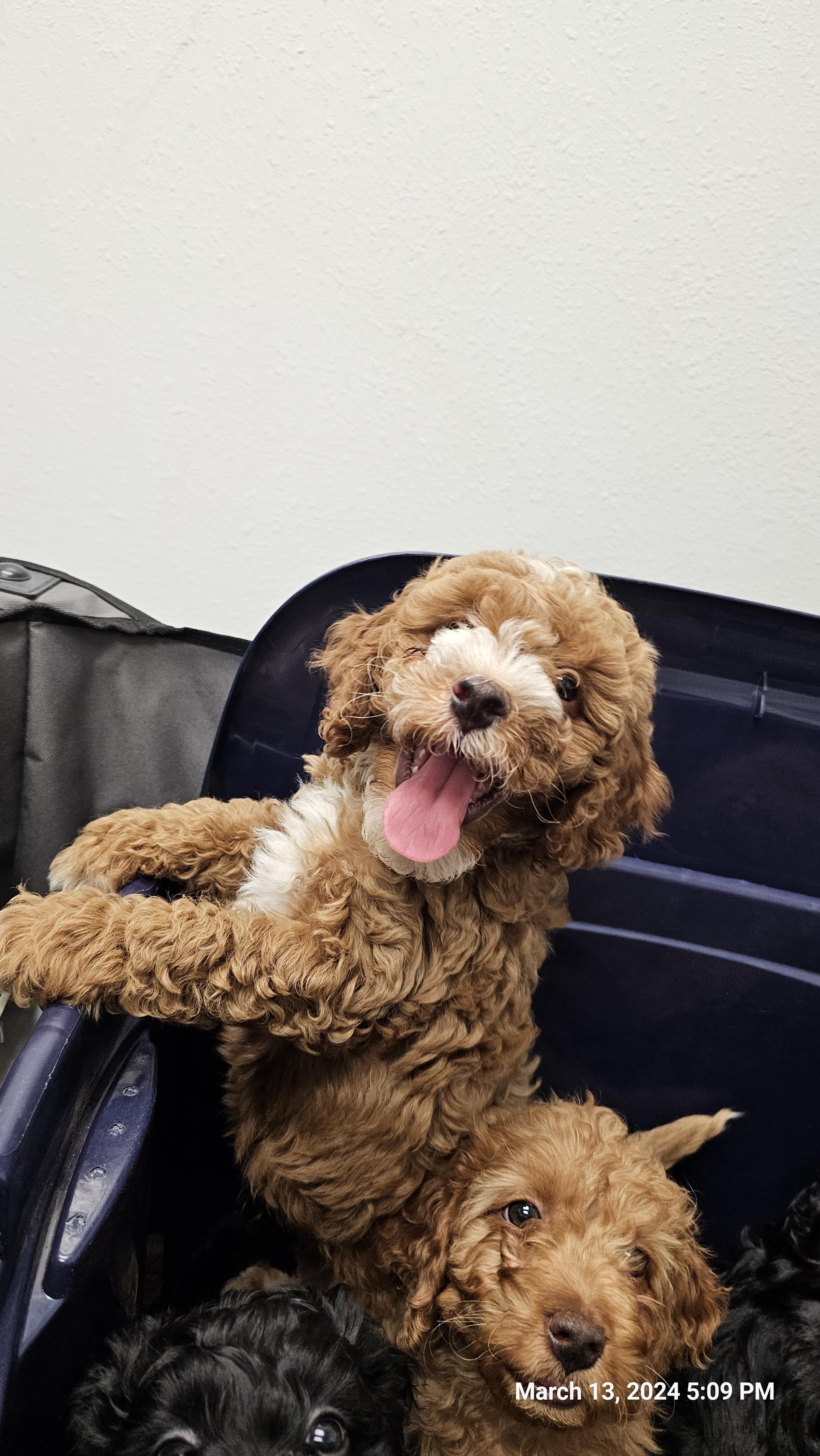 Tucker is a male Cockapoo. Carefully selected as a great representative of his breed, Cindy decided to make him part of their program. Cindy has passed Good Dog’s screening process, which involved a review of their breeding practices, environment, and the mental and physical health of their dogs.
