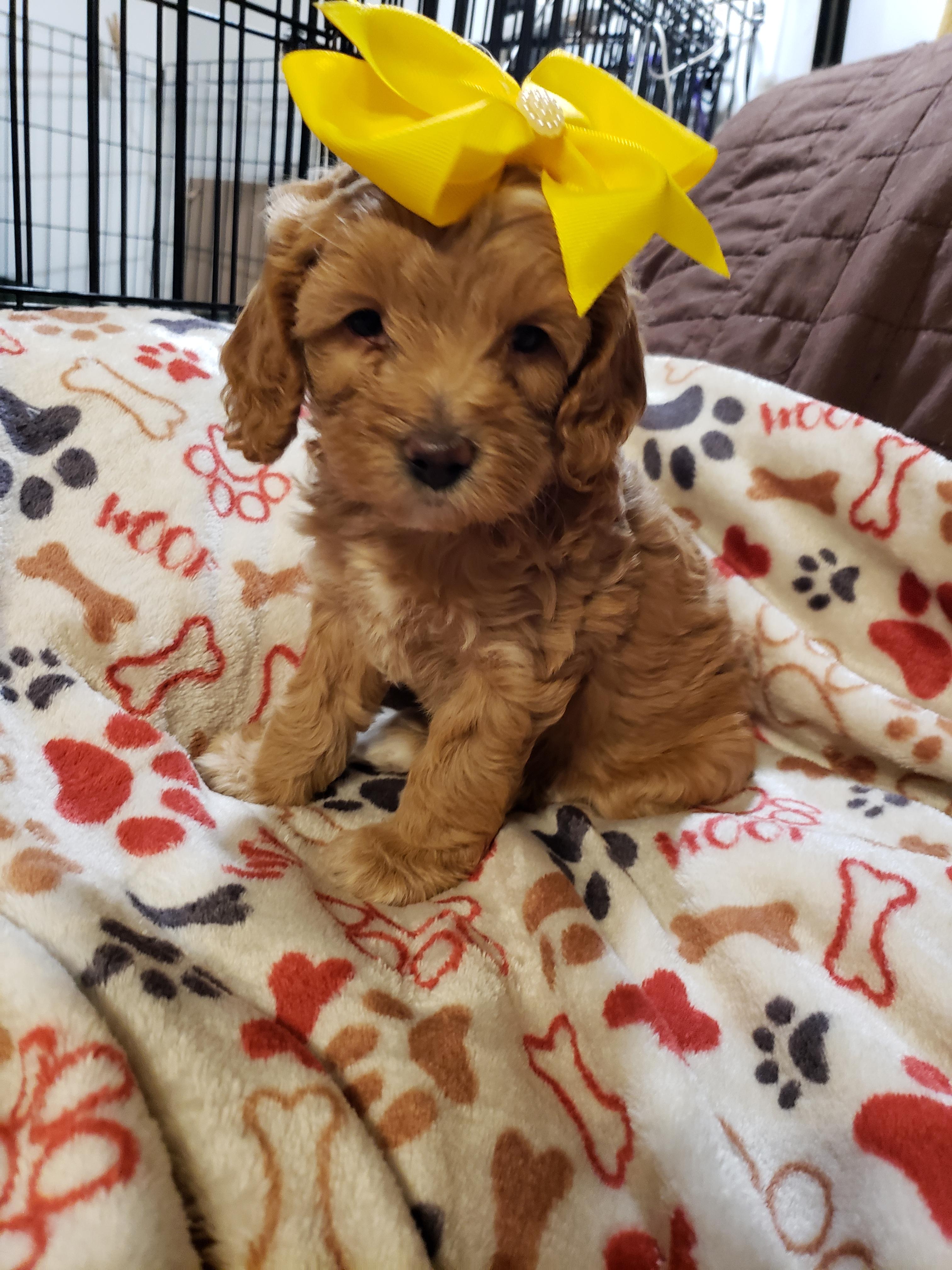 Bella is a female Cockapoo. Carefully selected as a great representative of her breed, Cindy decided to make her part of their program. Cindy has passed Good Dog’s screening process, which involved a review of their breeding practices, environment, and the mental and physical health of their dogs.