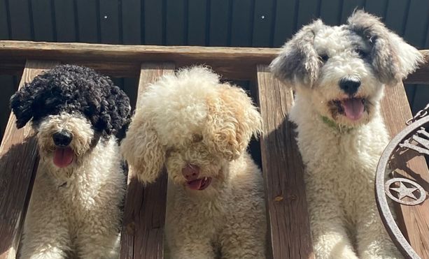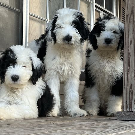 I'm Daniel S., the breeder behind Roughneck Doodles located in West Columbia, TX. We raise beautiful Sheepadoodles and have found them to be our best friends and even our therapy dogs. We're empty nesters, but our house is far from quiet. Our furry kids have taken over, and they're not shy about making their presence known. They're indoor pets, always by our side, and have even commandeered our bed!