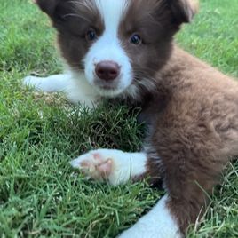 Amazing experience with Stevie. So responsive, so helpful even after puppy pick-up. Our little chocolate border collie is amazing! Beautiful, smart, and healthy! Stevie does an amazing job communicating on all aspects. She patiently answered all of our questions. We picked up Okie in July. And loving the energy & warmth she has added to our family. I would work with Stevie again without concern.