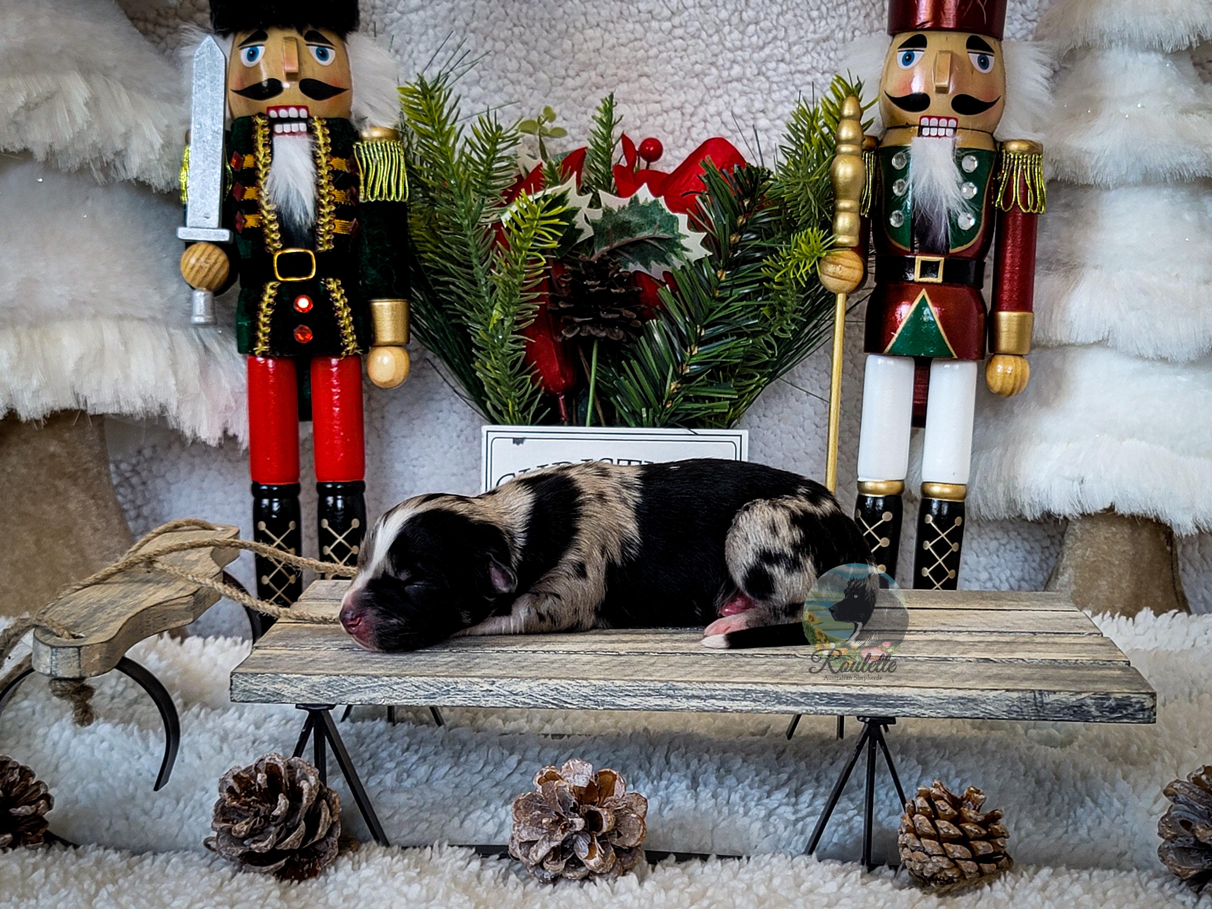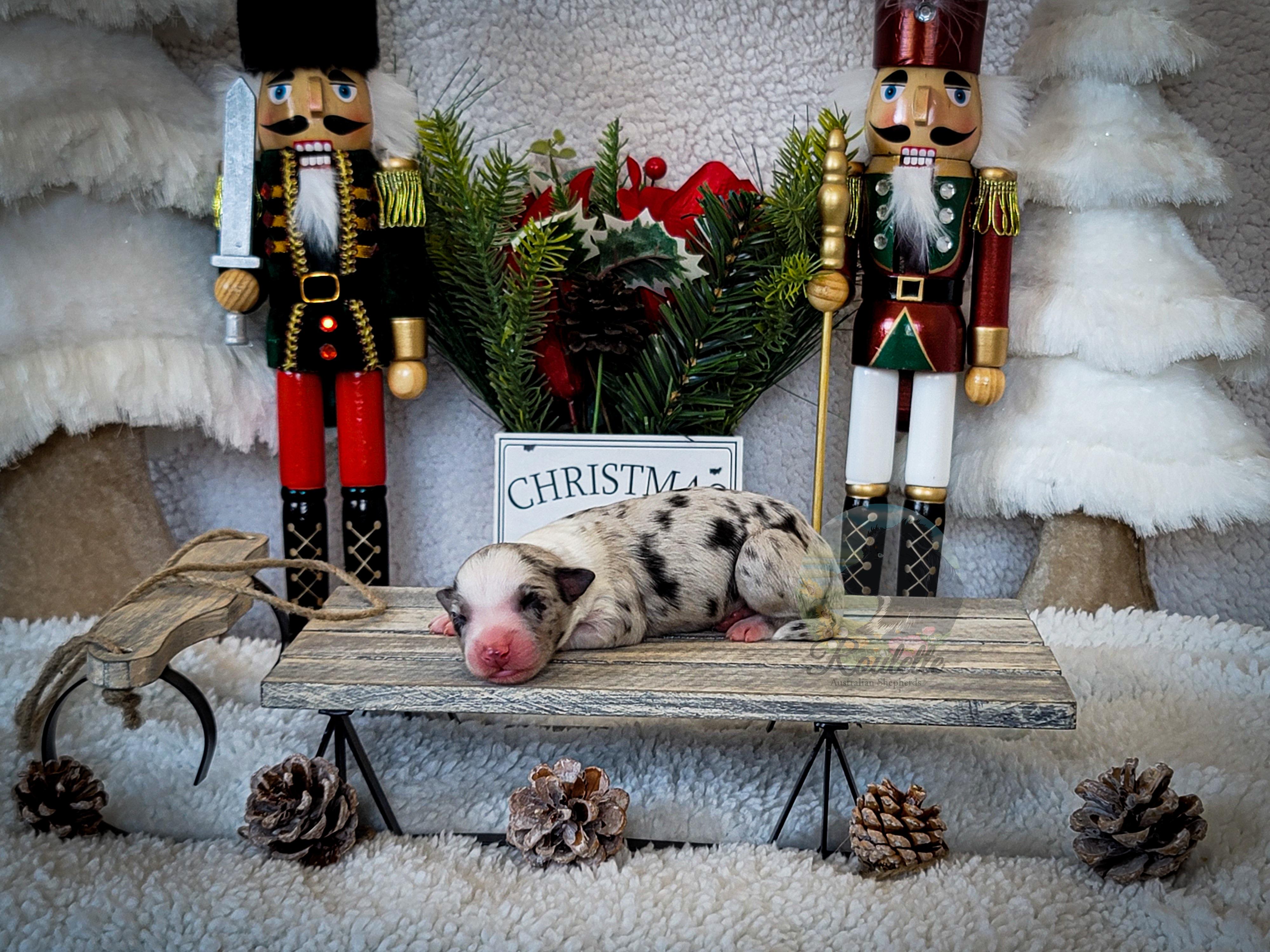 Our puppies include black, red merle, blue merle, and red. Colors will vary depending on the parent dogs.