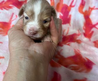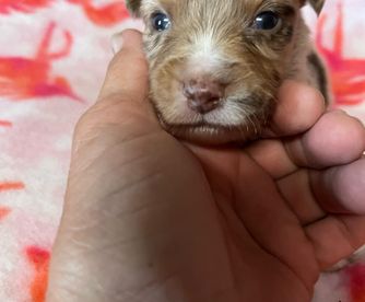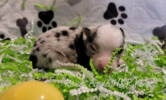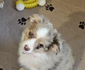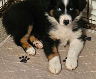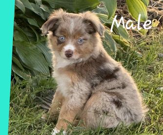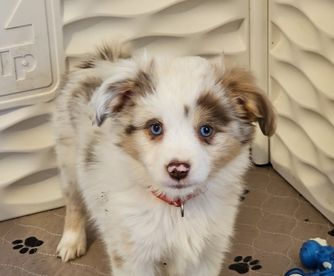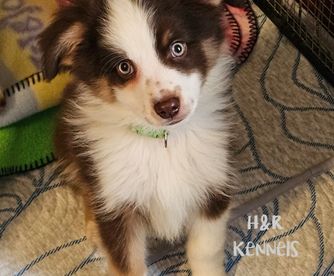 Our puppies include black tri, blue merle, red merle, and red tri. Colors will vary depending on the parent dogs.