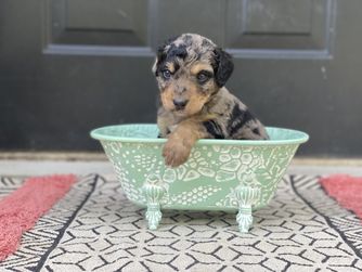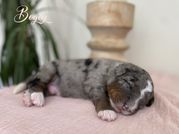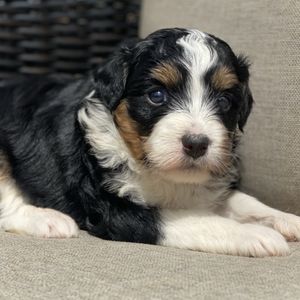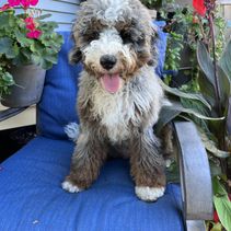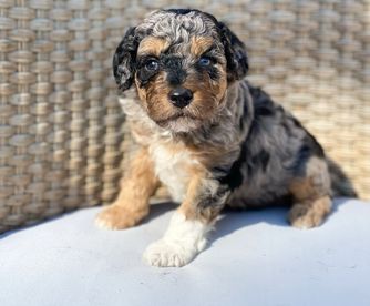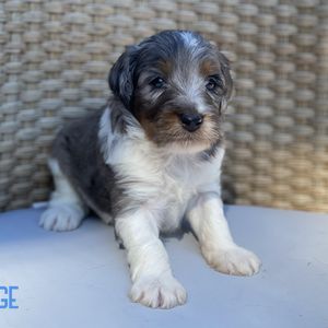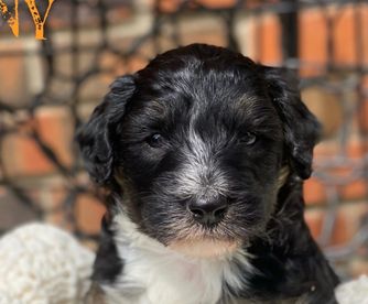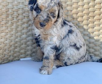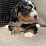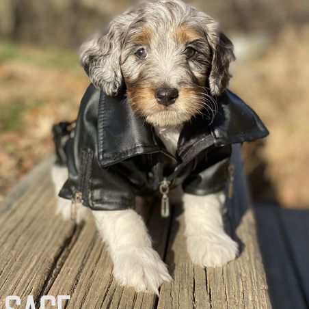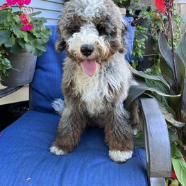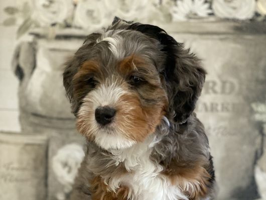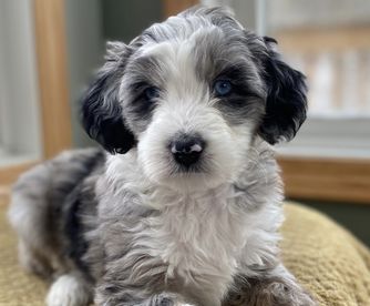 Our Bernedoodle puppies include sable, black and white, tri-color, and phantom. Aussiedoodle puppies include blue merle, red merle, black phantom, black and white, black tri-color, red phantom, and red tri-color. Colors will vary depending on the parent dogs.