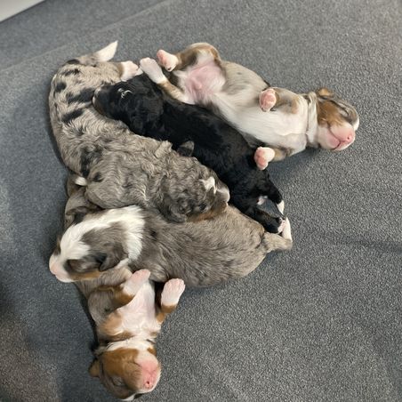 I'm a retired hairdresser and have always had dogs growing up. I feel in love with Bernedoodles and always had a passion for owning my own business and working from home to raise my family. I did lots of research for a few years and found a mentor. I quit my full time job in 2022 and went for it.