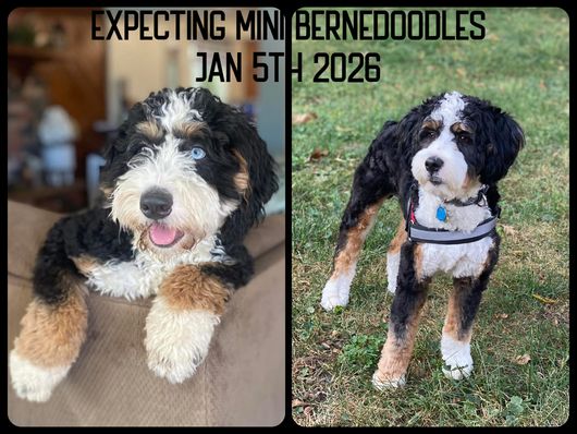 Our Bernedoodle puppies include mini and standard sizes. Aussiedoodle puppies include toy, mini, and standard sizes. Sizes will vary depending on the parent dogs.