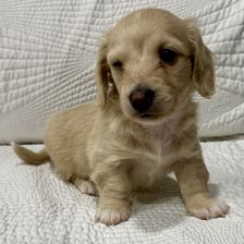 Creamie is a female Dachshund. Carefully selected as a great representative of her breed, Theresa decided to make her part of their program. Theresa has passed Good Dog’s screening process, which involved a review of their breeding practices, environment, and the mental and physical health of their dogs.