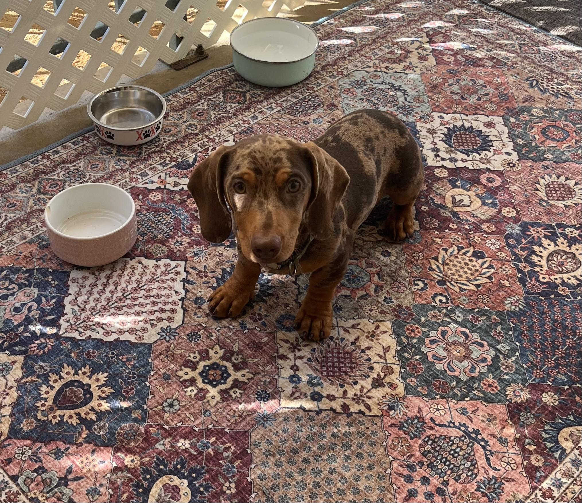 Bijou is a female Dachshund. Carefully selected as a great representative of her breed, Theresa decided to make her part of their program. Theresa has passed Good Dog’s screening process, which involved a review of their breeding practices, environment, and the mental and physical health of their dogs.