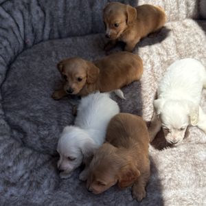 Our puppies include cream, red, chocolate, chocolate and cream, black and tan, and black and cream. Colors will vary depending on the parent dogs.