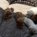 Puppies are growing, now at 5 weeks old, their personalities are definitely in place. Low temperaments like their parents, socializing, playing with toys, g trying to know the sounds and most of all healthy