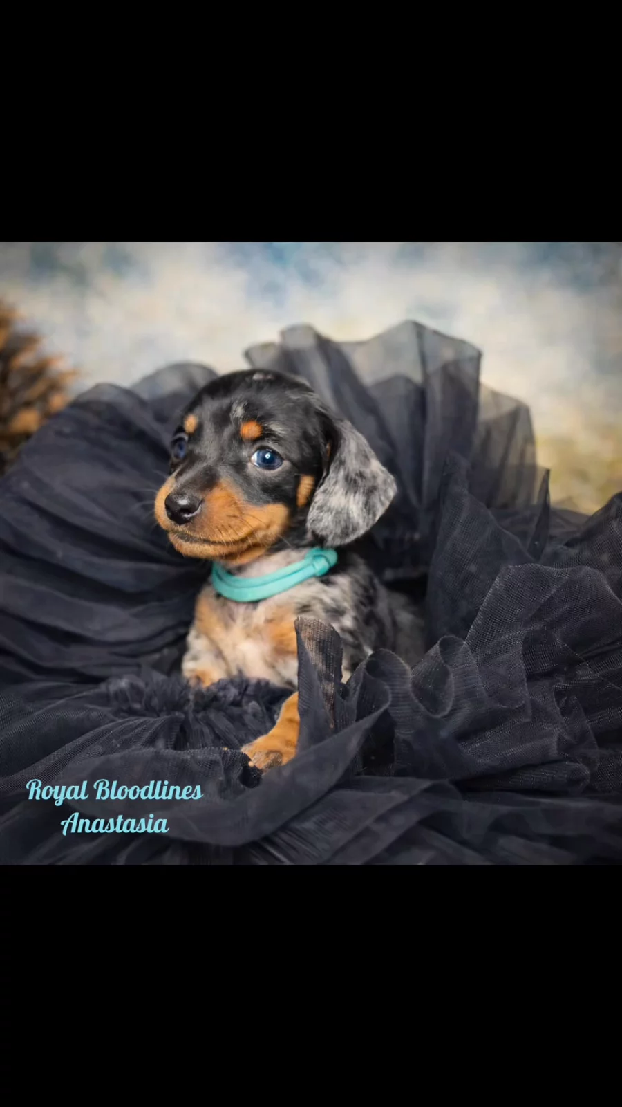 📣 Royal Bloodline Canines Litter Announcement 📣 We are thrilled to announce the arrival of our Royal Heirs & Heiresses litter, born to an exceptional pairing 👑🐾 This beautiful litter arrived last night and includes 6 stunning puppies — 4 girls and 2 boys. ✨ Parents 👑 Sire: ALIBIS HOLDIN ME RANSOM @ TRUMANS MW • Out of AKC/UKC Champion lines and Russian import lines • Weight: 7.5 pounds 👑 Dam: ROYALBLOODLINES START YOUR ENGINE MS (“Indy”) • Weight: 8 pounds ⸻ ✨ Litter Details • Breed: Miniature Dachshund • Colors: Black & Tan and Black & Tan Dapple • Boys: 2 Black & Tan • Girls: 1 Black & Tan, 3 Black & Tan Dapple 👑 Meet the Royal Heirs & Heiresses 👑 ✨ All puppies are currently available for deposit Girls • Anastasia — Black & Tan Dapple | Aqua collar • Arabella — Black & Tan Dapple | Neon pink collar • Josephine — Black & Tan Dapple | Multicolor pink collar • Victoria — Black & Tan | Purple collar Boys • Kingsley — Black & Tan | Green collar • August — Black & Tan | Orange multicolor collar 🧵 Coat Type Notice These puppies will be either smooth or wire. Coat type typically cannot be accurately determined until 3–4 weeks of age (sometimes longer). If you reserve a puppy prior to that time, please understand that coat type will not be known at the time of reservation. 💰 Pricing Notice Prices are subject to change for puppies that are not yet reserved. Once a puppy is reserved with a deposit, pricing is locked in. Momma and babies are doing great and being closely monitored as they settle in. Individual puppy photos, updates, and availability details will be shared as these little royals grow. 👑✨ Please PM us for deposit and placement information, and thank you for following along with Royal Bloodline Canines!