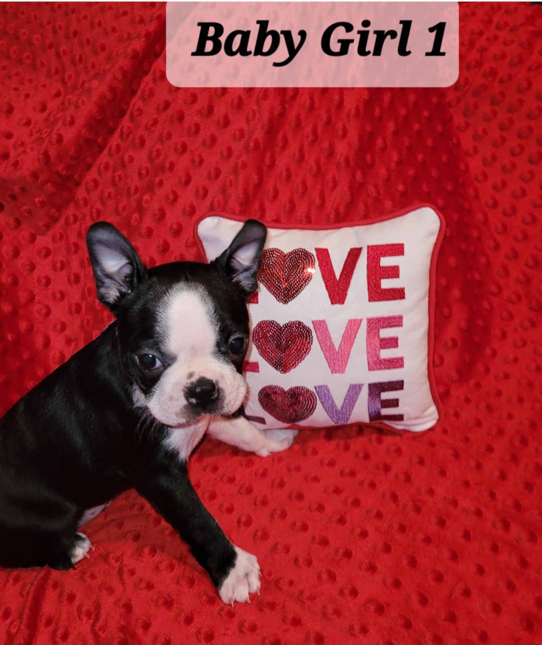 Lady is a female Boston Terrier. Carefully selected as a great representative of her breed, Janet decided to make her part of their program. Janet has passed Good Dog’s screening process, which involved a review of their breeding practices, environment, and the mental and physical health of their dogs.