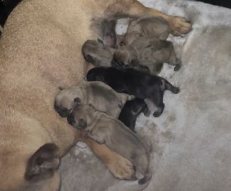 Our puppies include brindle, cream, white, and blue fawn. Colors will vary depending on the parent dogs.