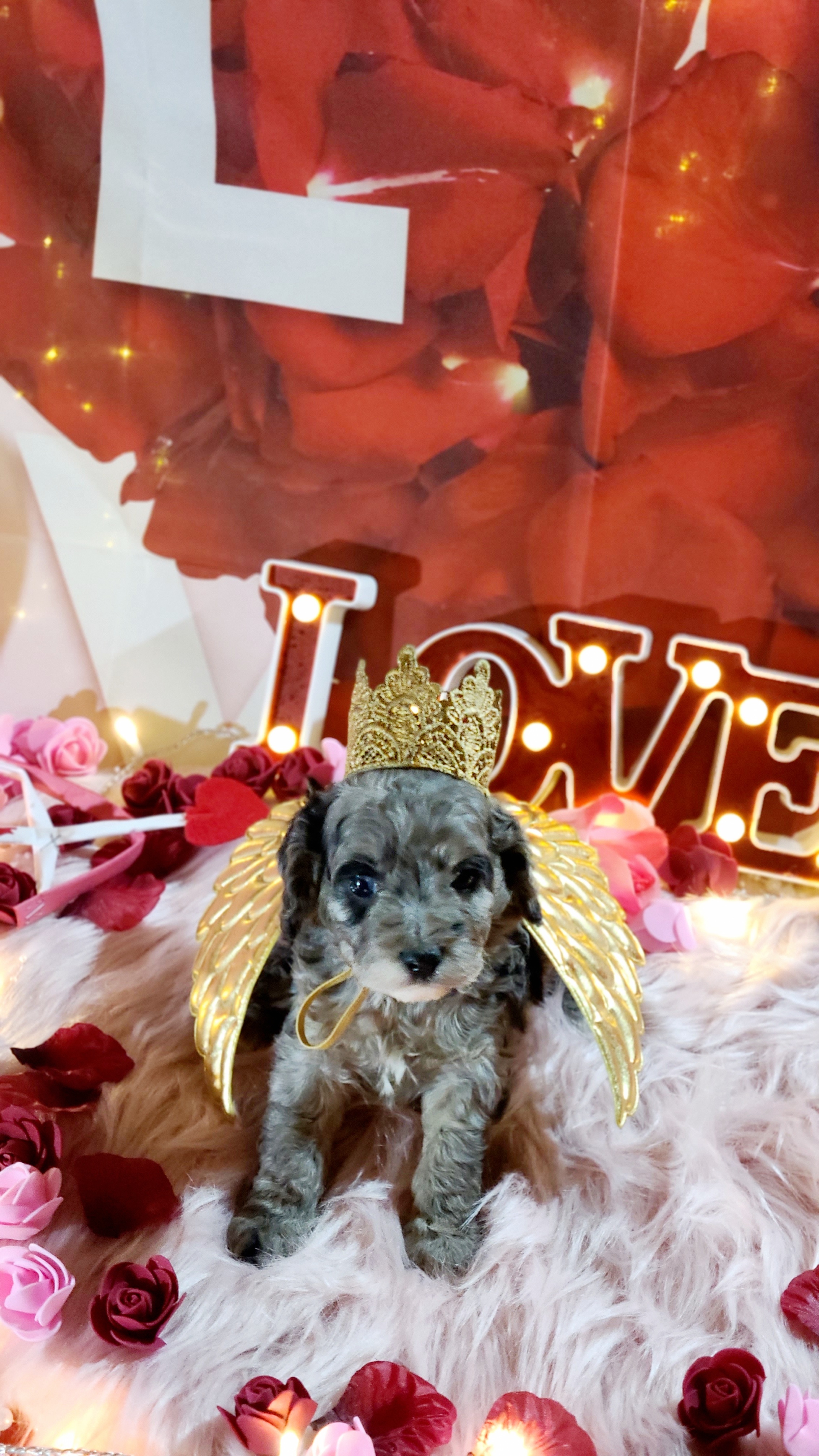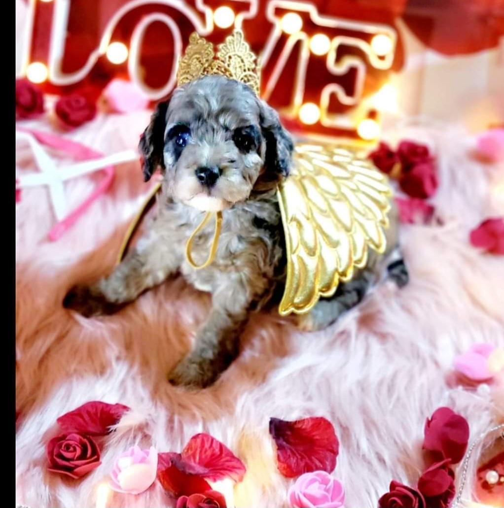 Stefano is a very sweet 10lbs poodle. He is very mellow sire. He loves to give kisses to his ladies and of course, his humans. He is timid at times especially, if he doesn't know you. But he warms up quickly. He is energetic, loves his hooves and loves to sleep with the kiddos! He also very cute 😍 and handsome!