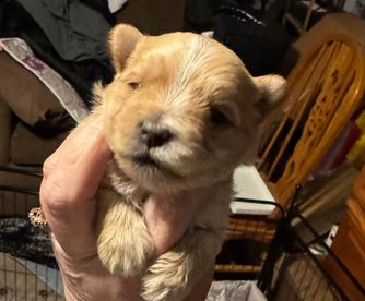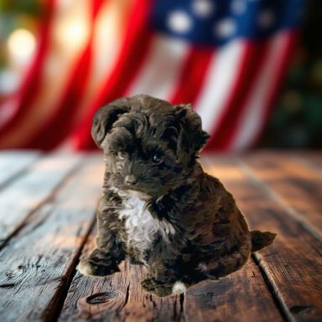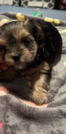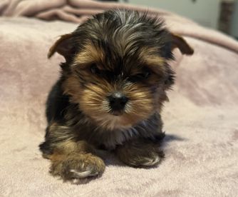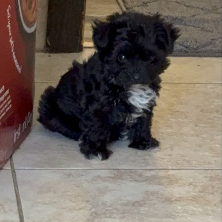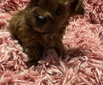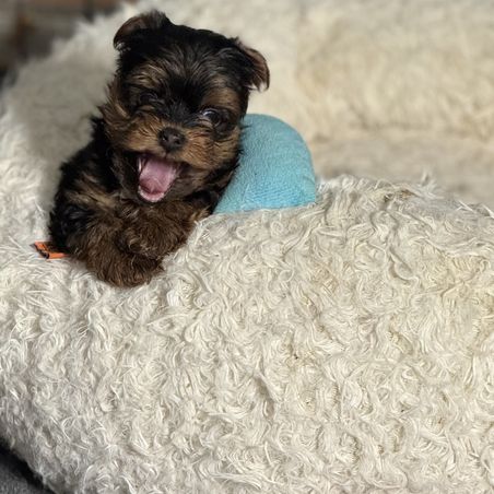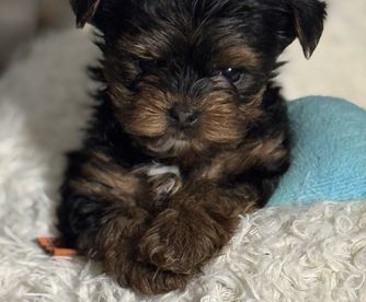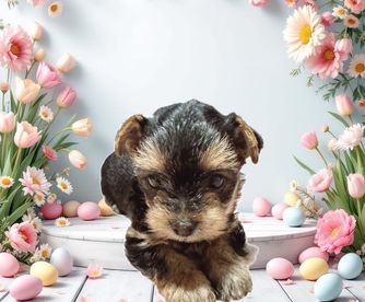 Our Yorkshire Terrier puppies include chocolate, tan and white, chocolate and tan, parti, blue and gold, black and gold, and black and tan. Schnoodle puppies include parti, gray, black and white, and black. Yorkipoo puppies are chocolate. Colors will vary depending on the parent dogs.
