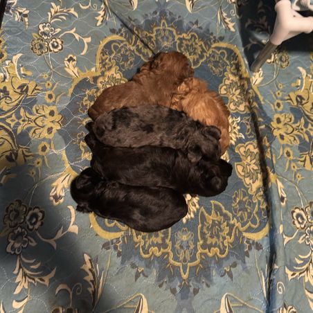 These gorgeous puppies are doing so well! They come running when they see anyone. They especially love playing with our 5 months old poodle.