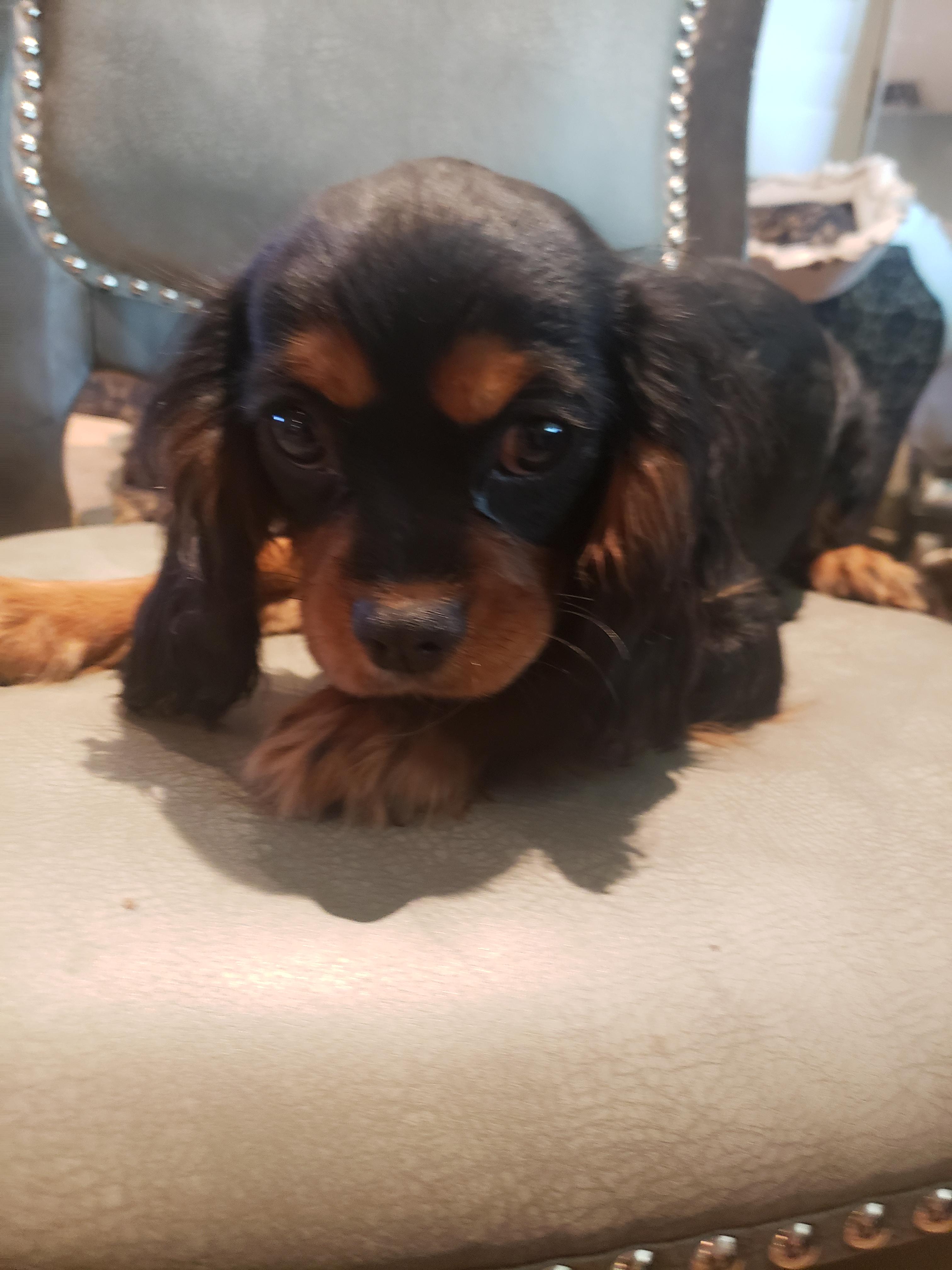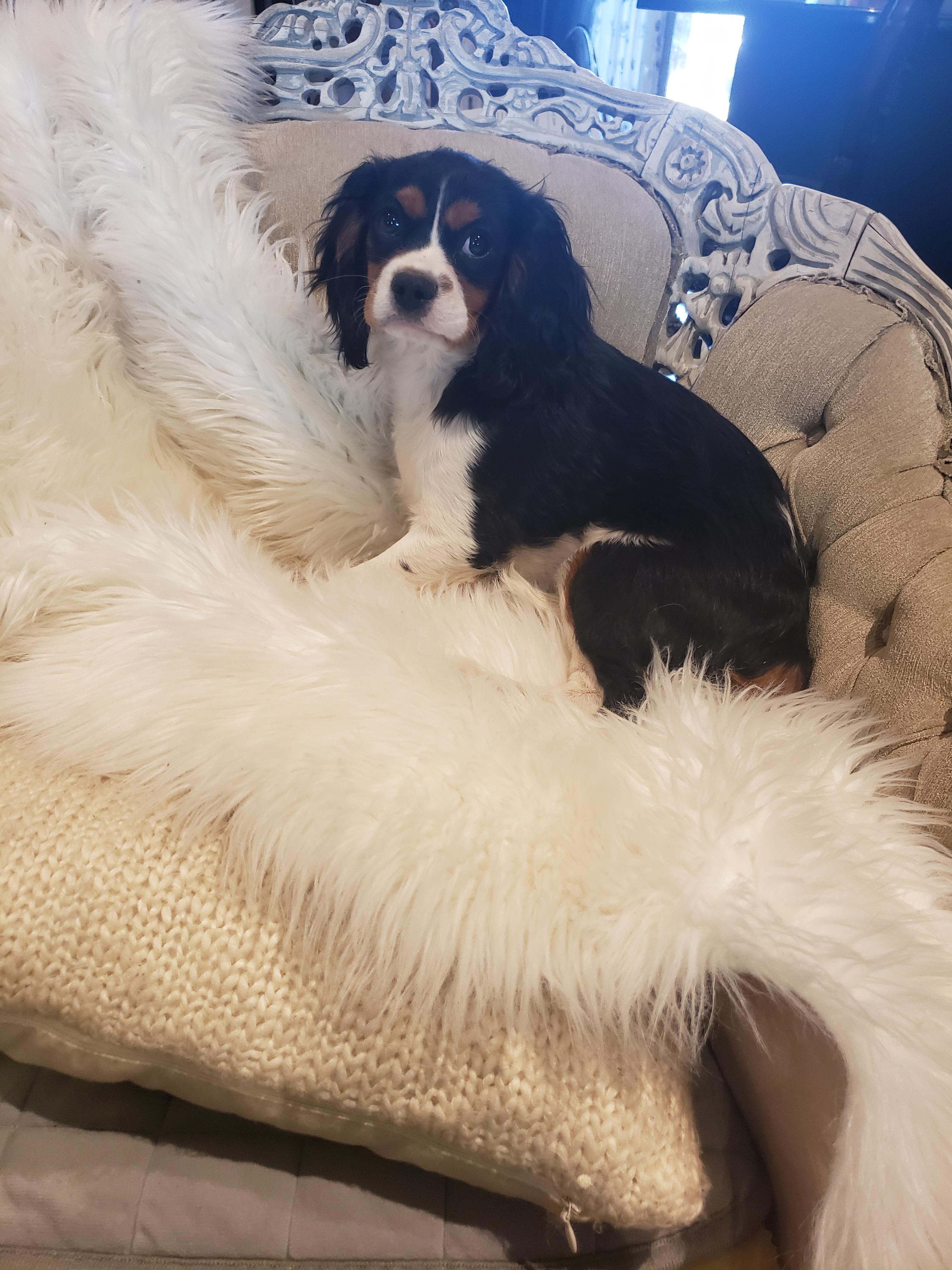 Our puppies include blenheim, black and tan, and tri-color. Colors will vary depending on the parent dogs.