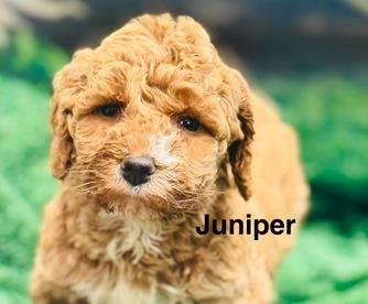 Our Cockapoo puppies include buff and white, cream, and red and white. Goldendoodle puppies include red, black, phantom, and parti. Colors will vary depending on the parent dogs.
