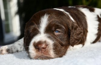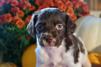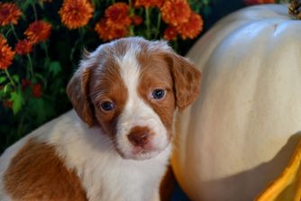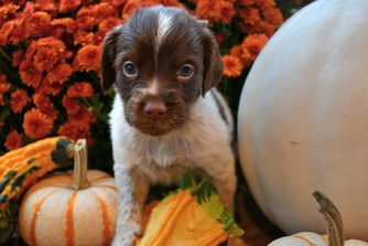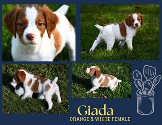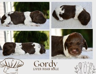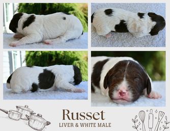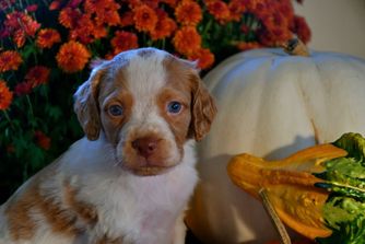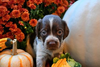 Our puppies include white and liver, white and orange, liver roan, orange roan, orange and white, liver white and orange, and liver and white. Colors will vary depending on the parent dogs.