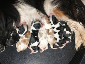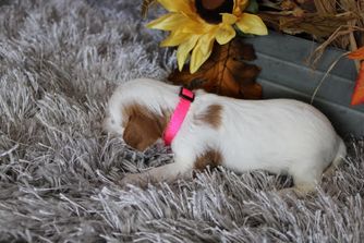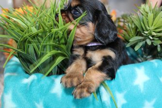 Our puppies include blenheim, ruby, tri-color, and black and tan. Colors will vary depending on the parent dogs.