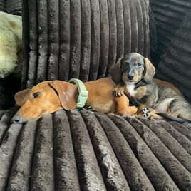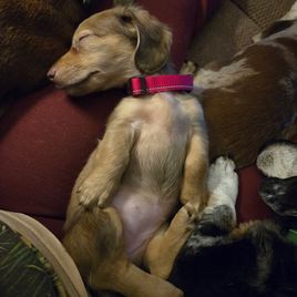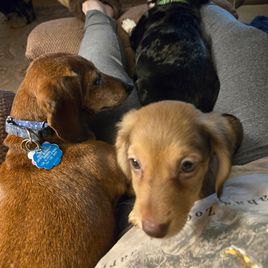 From the very get-go, Jessica was super easy to communicate with! She shows how much she cares about the puppies, and the discussion my girlfriend and I had with her when picking up our pup gave us all the confidence in the world that we got a good one. I highly recommend ANYONE to get a pup from Jessica. Couldn’t be more thankful to add a mini dachshund to our lives!!
