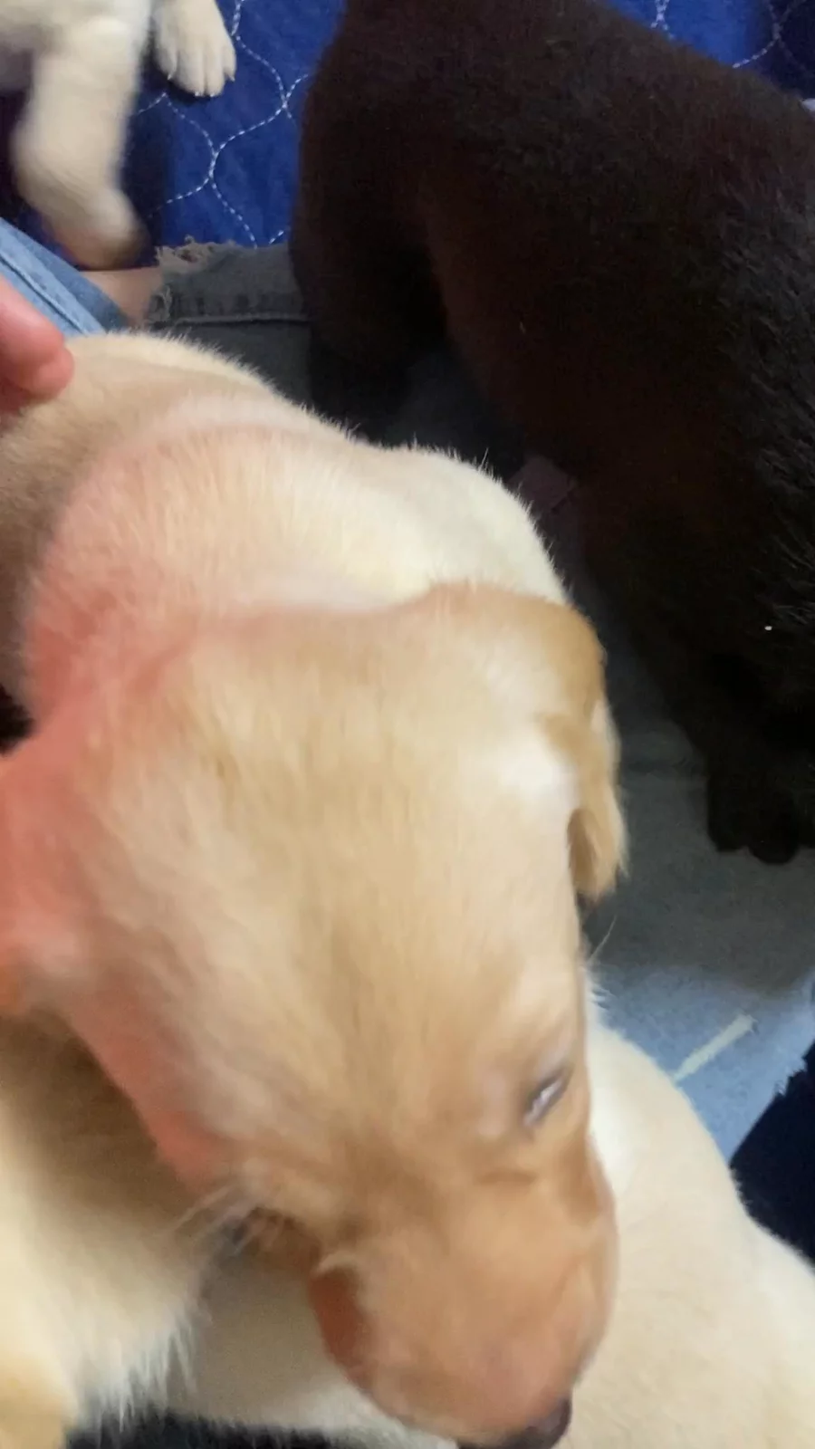 Puppies are getting big in a hurry! The yellow puppies noses and paws have started to turn black. At the end of next week, we should start seeing some eyes open! We started ENS (early neurological stimulation), and ESI (early sent introduction) this last week! Everyone is doing great ❤️