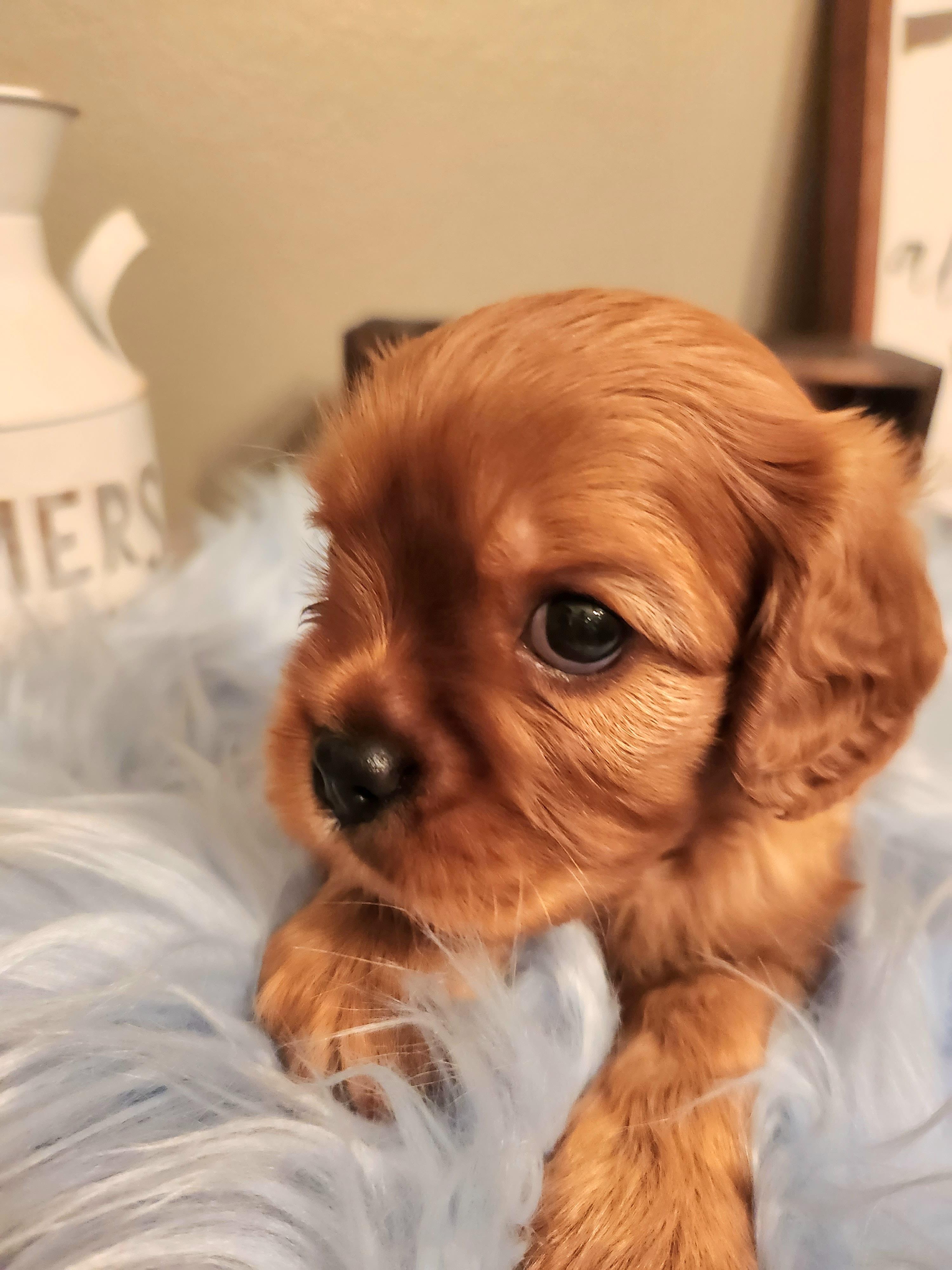 Our puppies include blenheim, ruby, tri-color, and black and tan. Colors will vary depending on the parent dogs.