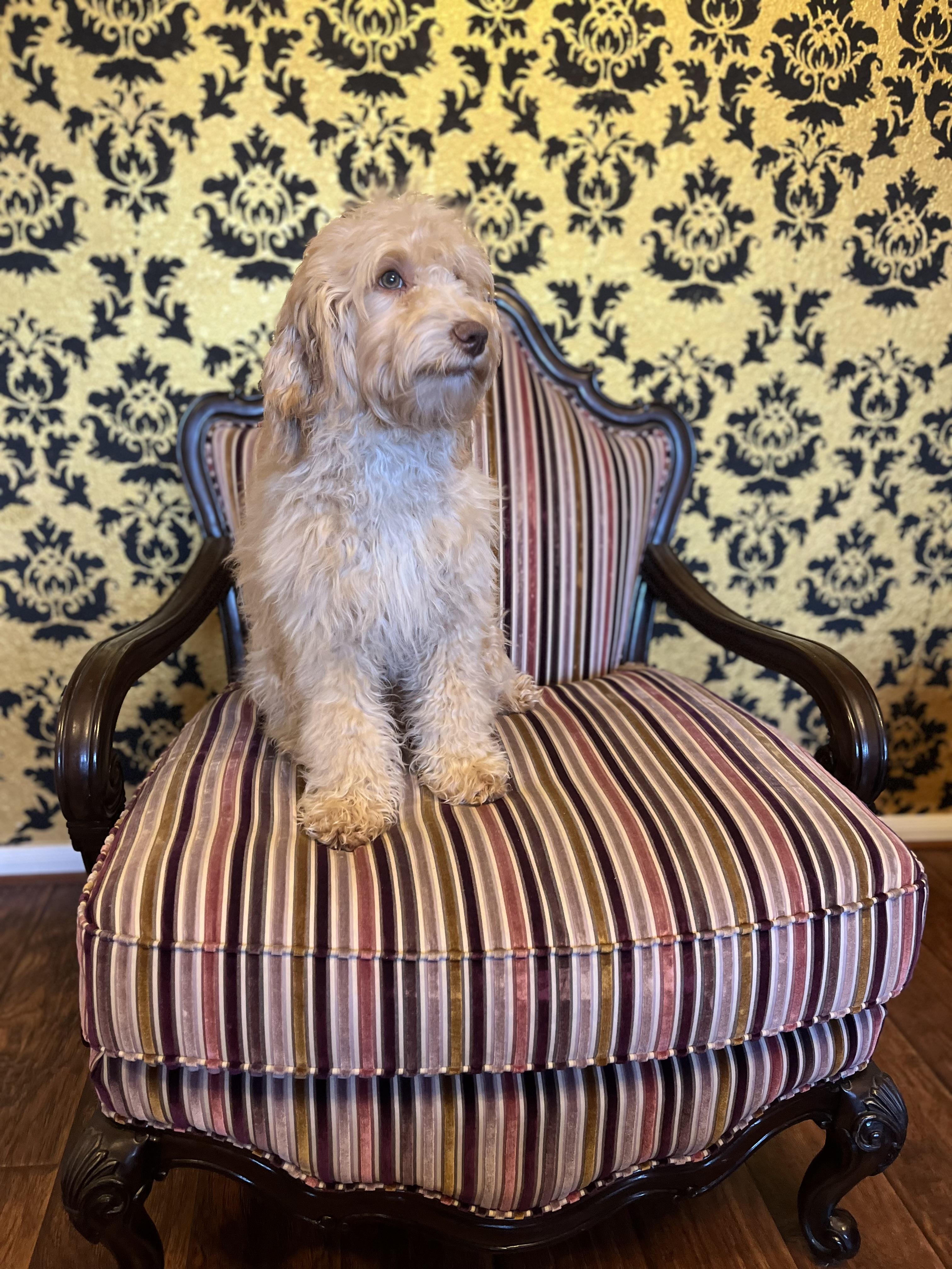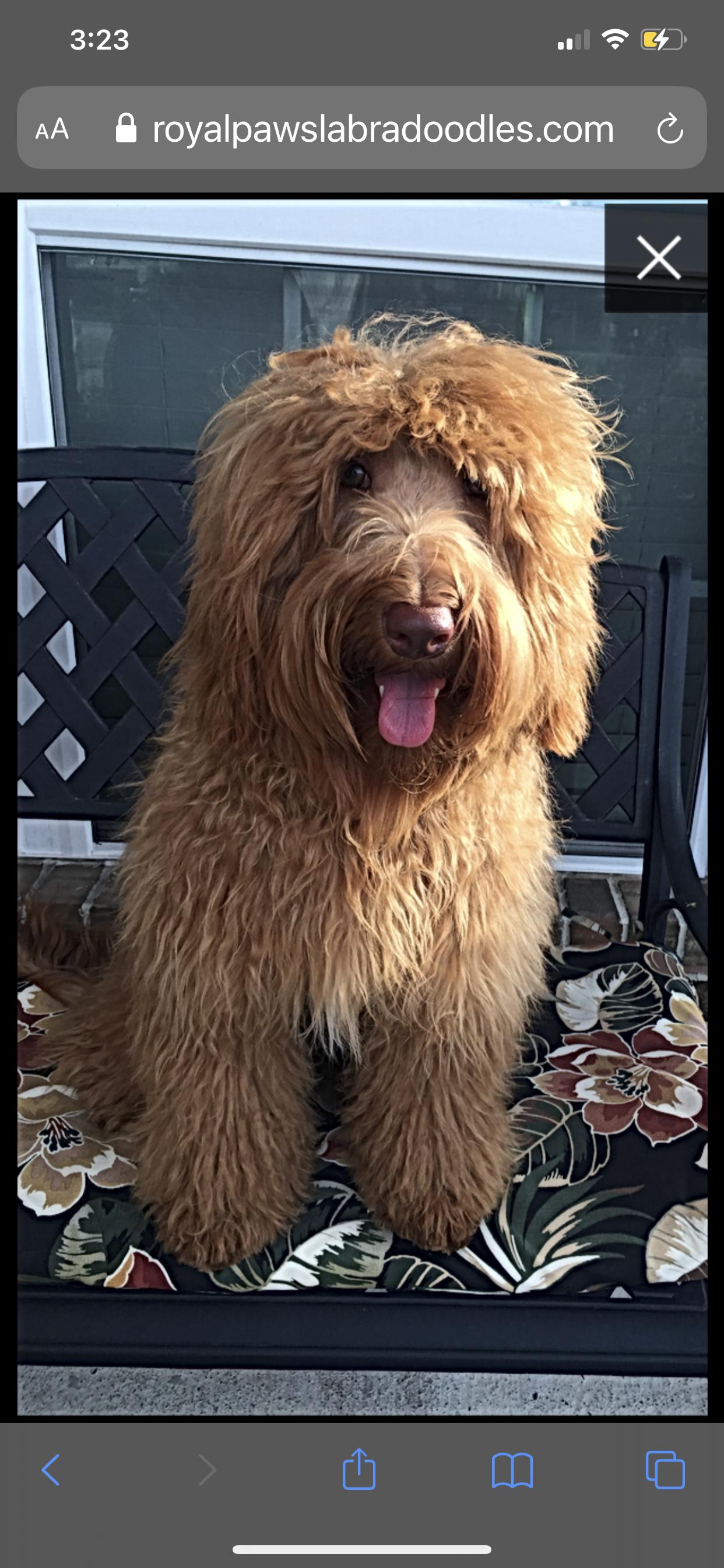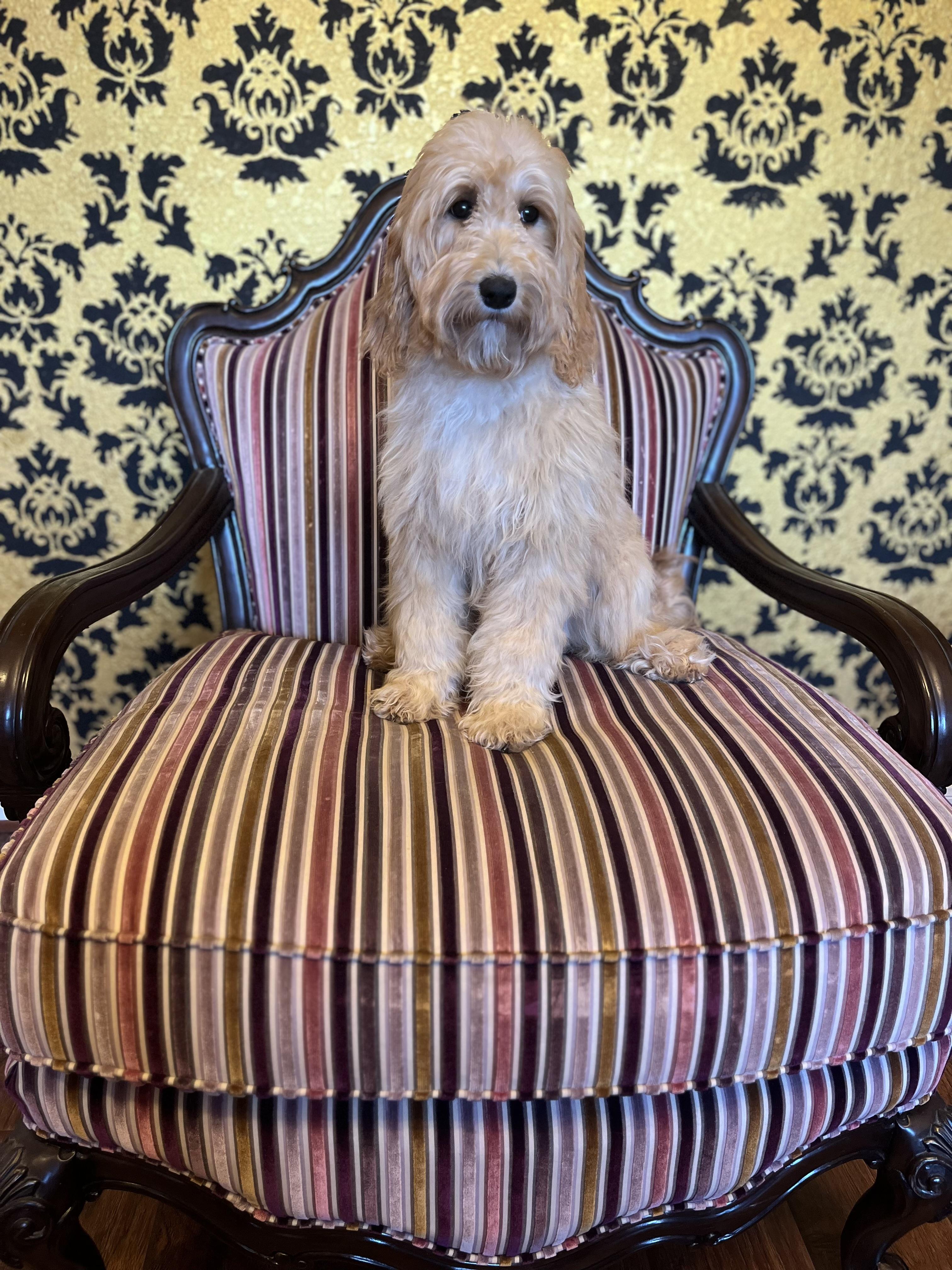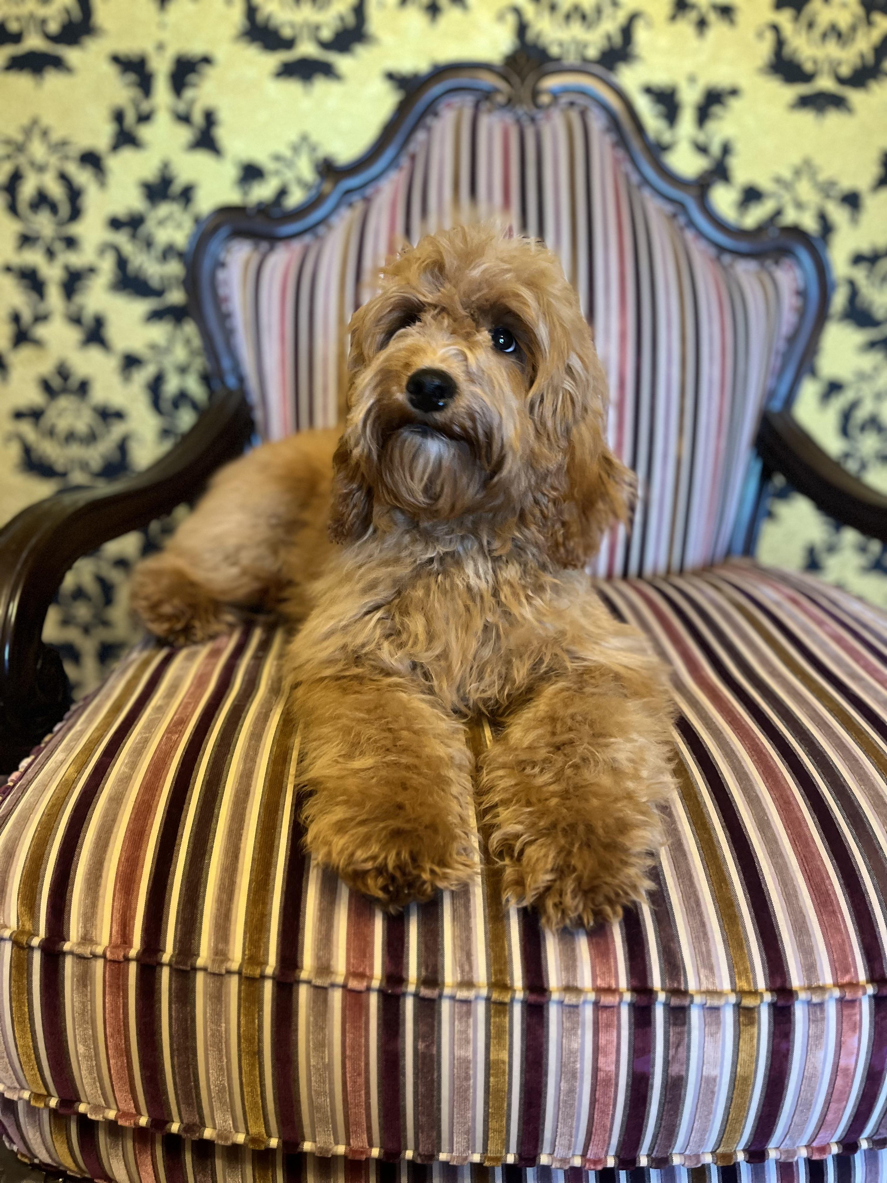 Emperor is a male Australian Labradoodle. Carefully selected as a great representative of his breed, Belinda decided to make him part of their program. Belinda has passed Good Dog’s screening process, which involved a review of their breeding practices, environment, and the mental and physical health of their dogs.