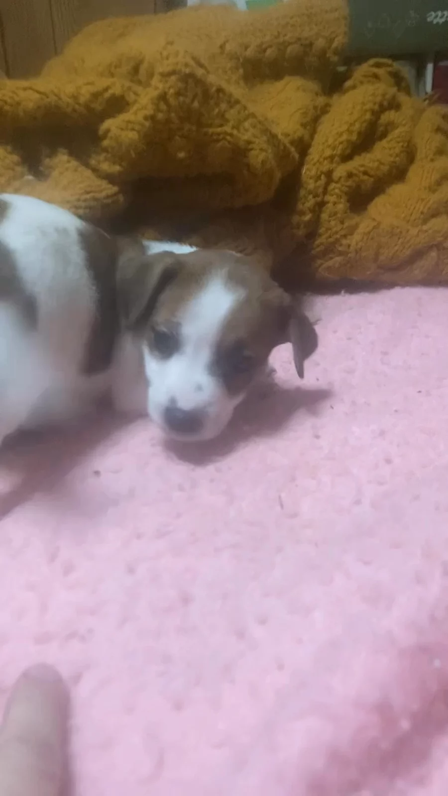 Long Legged, Smooth Coat, Tri Color Jack Russell Terrier. Timid, sweet. Very calm.