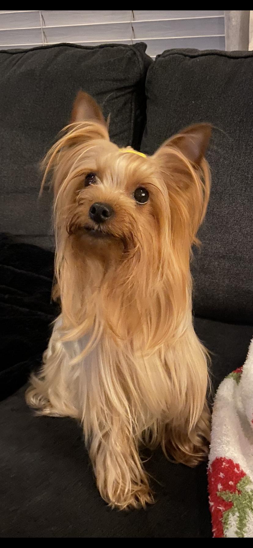 Royal is the sweetest girl and a total lovebug. She loves all humans and animals she meets. She is gold and blue and has long silky hair and a great temperament. She is embark tested and is 100% yorkshire terrier and has no genetic disorders. Royal is our furbaby and sleeps in our bed and goes everywhere with us, loves to wear her dresses and sweaters and just to spend time with her family. Royal is an excellent momma and loves her babies so much.
