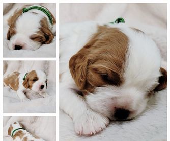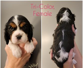 Our puppies include blenheim, ruby, black and white, black and tan, and tri-color. Colors will vary depending on the parent dogs.
