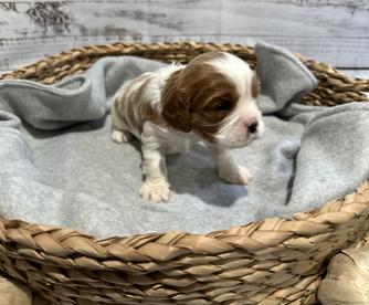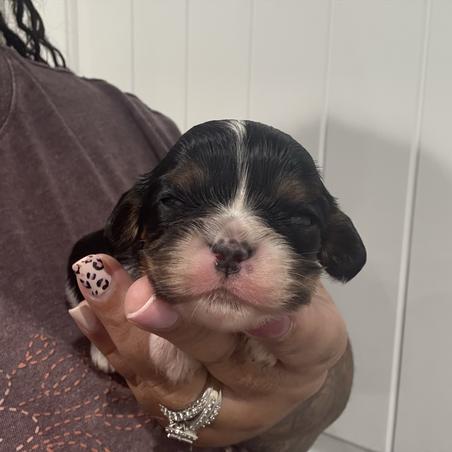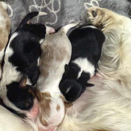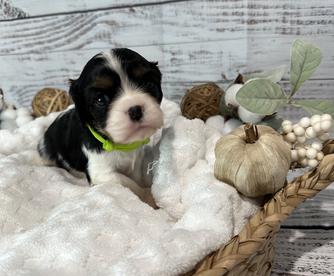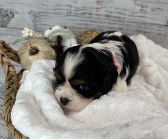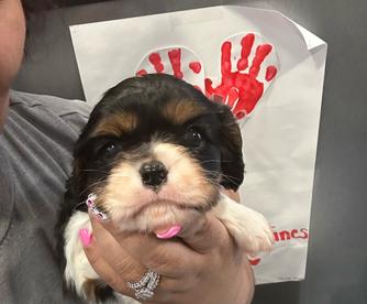 Our puppies include blenheim, ruby, black and tan, tri-color, and black and white. Colors will vary depending on the parent dogs.